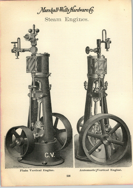 Closest I could find. for "Vertical Steam Engine". There are many similar in shape but none with the same dual fly wheels. These were used in small locomotives, boats etc