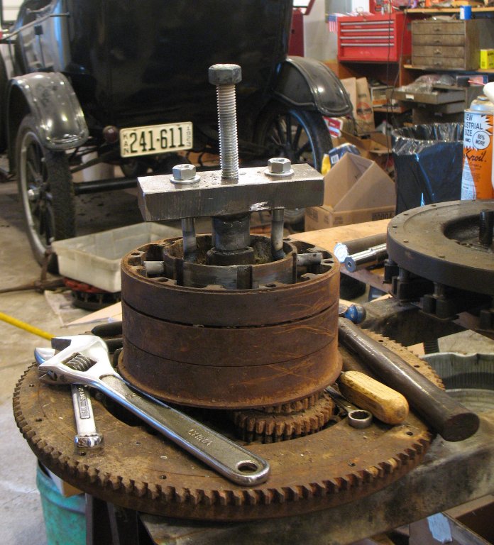 The original Ford clutch drum puller sometimes works, but a particularly stubborn drum will just bend it.