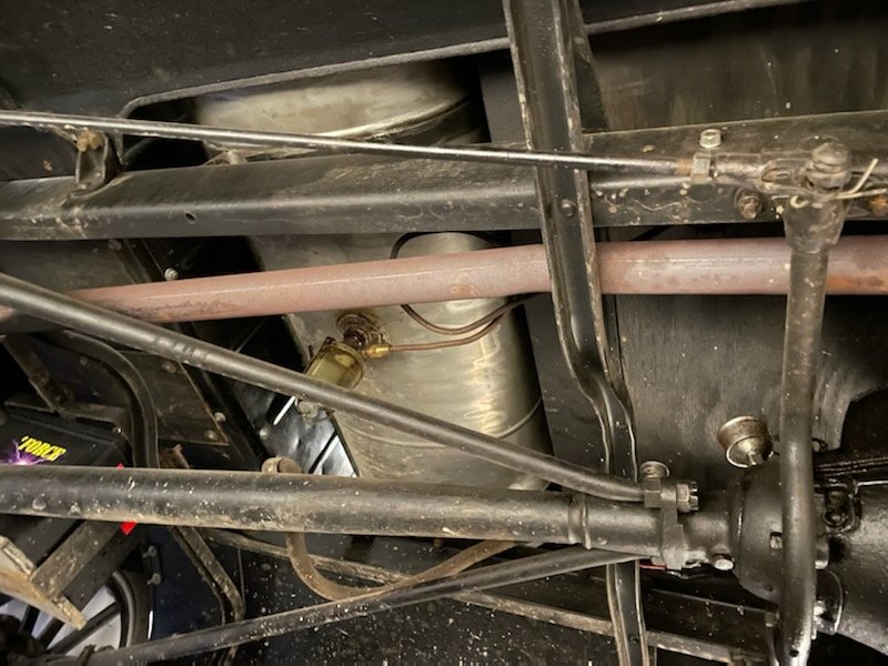 The car also has had the fuel sediment bulb replaced on it. This one has a glass fuel sediment bowl put on it. Older Ford tractors used these. I have a 54 NAA Ford tractor that has one just like that. The original T Ford bulb was solid brass with a screw in filter on the side. You can these in the Ford T parts suppliers catalogs. As far as the firewall is concerned you can get a correct steel low cowl firewall for around 50-70$. The parts houses like Lang’s has original used T parts and they may have one. Call them to see.