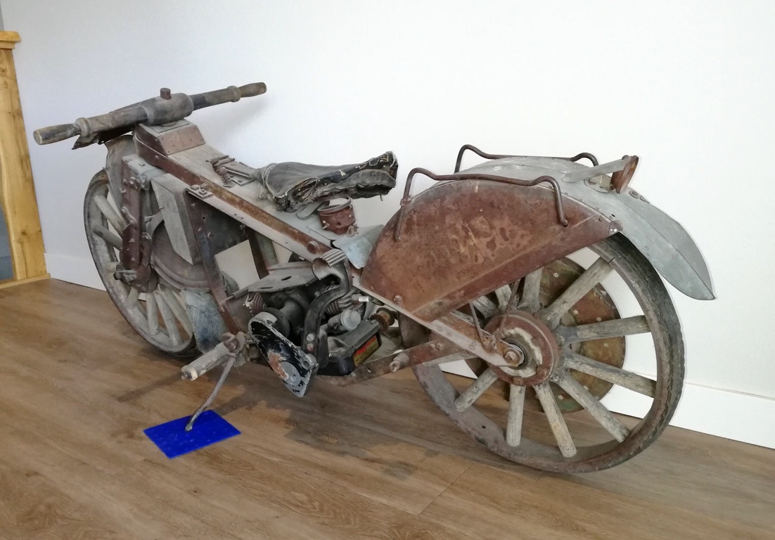 It appears that when this was made there was attention to detail. Is this in your possession? If so can you get a close up of the front suspension? Also it looks like the seat spring is a transmission clutch spring mounted in a ignition timer! I’d be scared to lean into a turn with it thou. Haha!