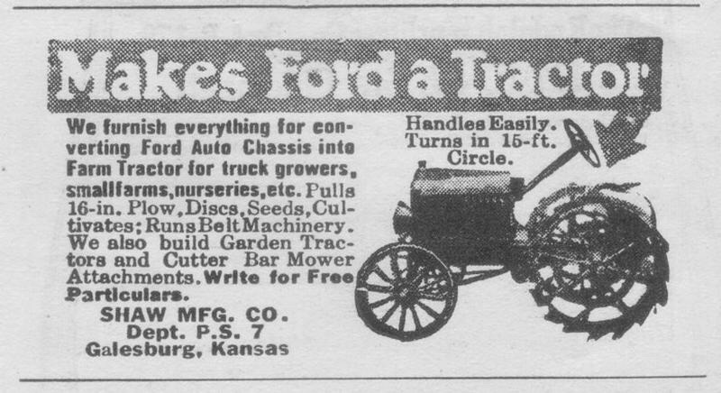 - * REQUIRED* Type and Year of Model Ts owned: '25 homemade pickup, Fond Du Lac conversion tractor
