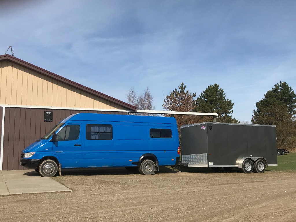 Whoa! A Sprinter is not a tow vehicle? I beg to differ. I have a 2006, 3500 diesel Sprinter (one ton, dually wheels) that I've towed with for years. True, I'm not pulling a load like freighter Jim frequently does but it handles my enclosed tandem trailer and 1917 Touring like it's hardly there. I still get 17-18 mpg and I have the camper van to sleep in if I wish. The combined weight of the trailer and touring is under 3600 pounds. Even lightly loaded the Sprinter is double the weight of the trailer and Model T so you have great control. If you are only bringing one car back I wouldn't rule it out as an option.
