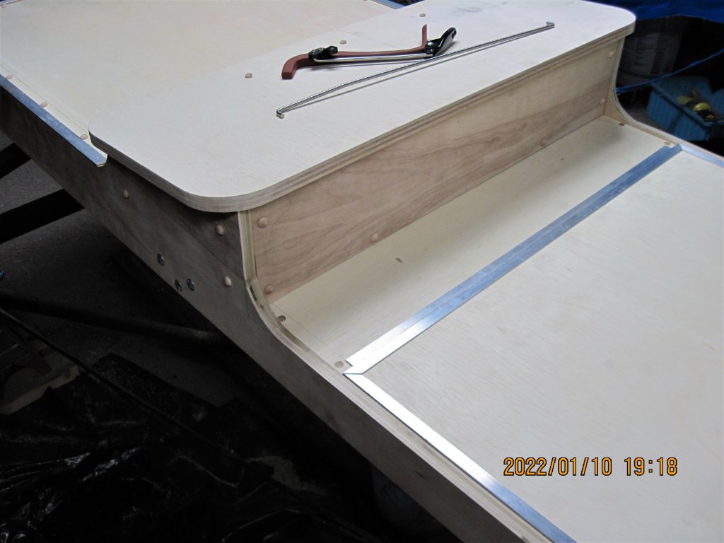Made a trunk /tool box this afternoon, drivers side is a battery compartment (will coat with epoxy) fits full size or Optima, checking tank location and may make some risers for it (only to clear sediment bowl/shut off), aluminum top trim on drivers side done also. Have to make lid for the box, will make water resistant with a lip all around.