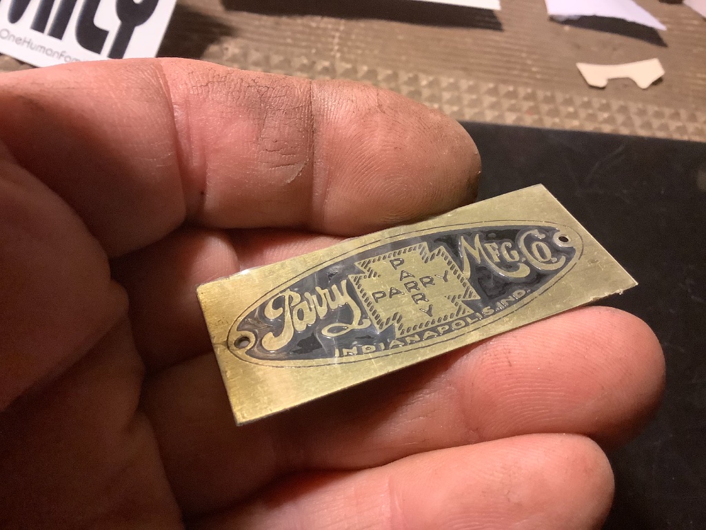 Thanks for the continued progress pics, Don. If the owner would like one of these, or more send me an email tmorsher@icloud.com and I’ll put you in touch with the man who has them. These are new, etched brass and were oval , likely attached to the rear lower edge on the passenger side. Easy to trim to shape. I like to put them on the heel panel, too.