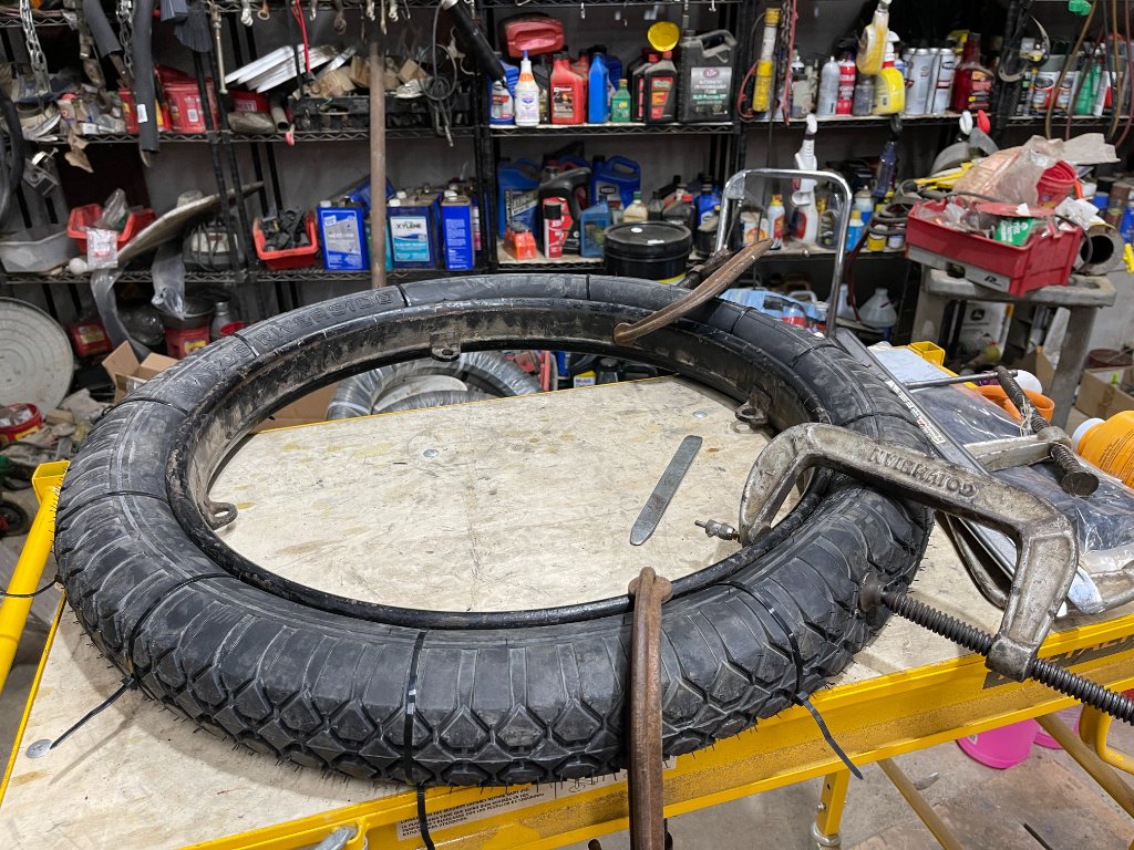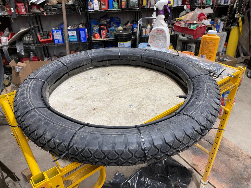 I just had my first experience replacing the tires on my '23 T. It reminded me a little of what wrestling a bear must be like. The tires were old and the rims were rusted so removal was challenging. I wire brushed the insides of the rims and treated them with rust converter and prepared to install the new tires, tubes and flaps I purchased. I had no idea how much challenge my choice to use flaps would add to the adventure. After many failed attempts to mount the tire, tube and flap assembly as a unit and then trying to add the tube and flap after mounting one bead of the tire, I stopped and regrouped.
