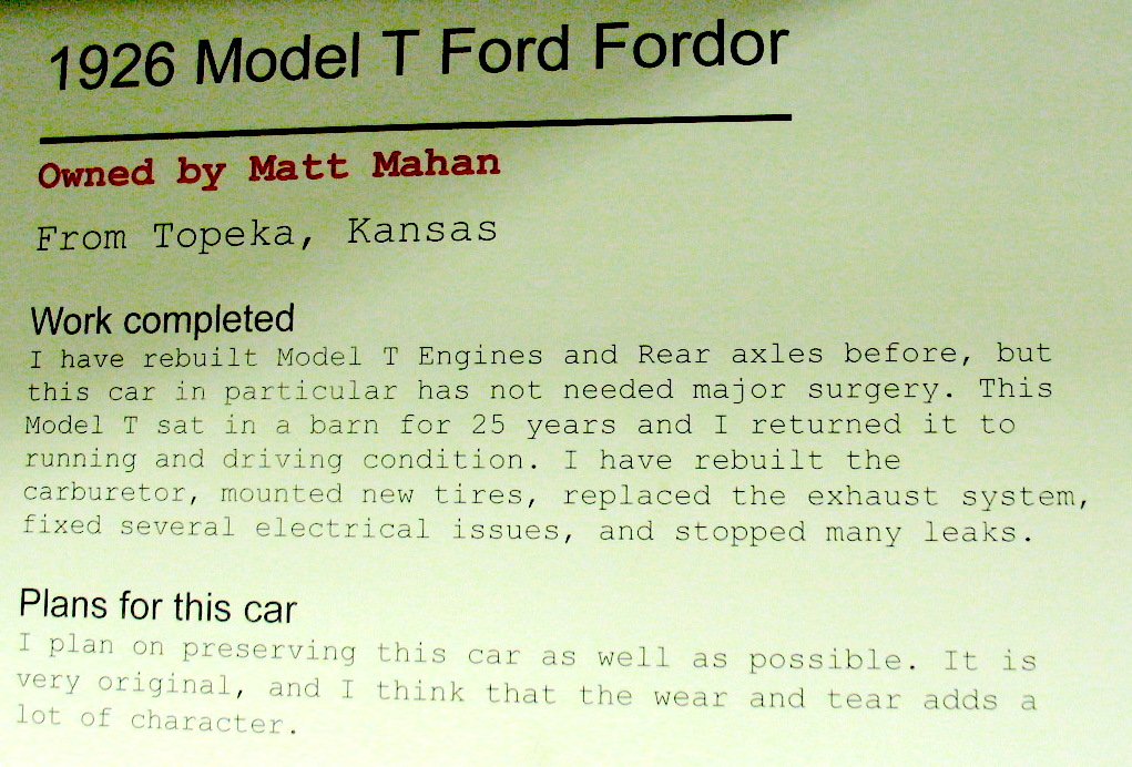 * REQUIRED* Type and Year of Model Ts owned: 1910 Touring, 1914 Pickup