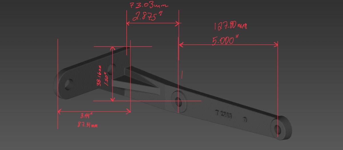 Sorry for the wacky orientation but this should help. These are the dimensions from a likely repro bracket I have. Email me if you need anything, good luck!