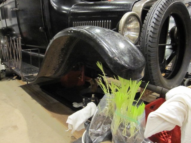 Actually not much, waiting for my wheels to come back with new wood spokes so it has somewhat become a storage location. Well the heat has been on steady and the bulbs have decided to come out a little early