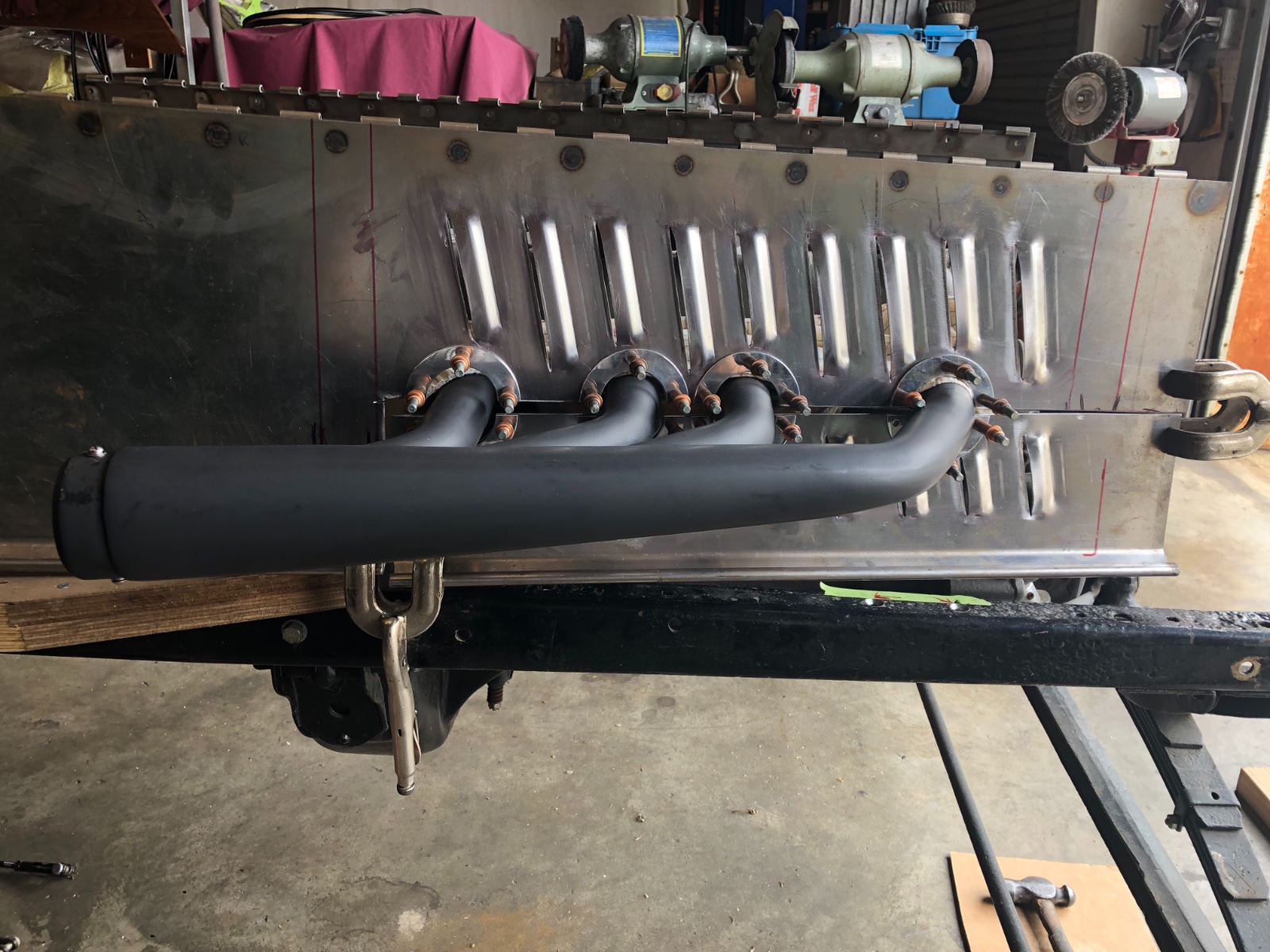 Dave sent me his hood for header relieving with the lower panel staying attached to the firewall and attached to the radiator by means of a pinch plate.