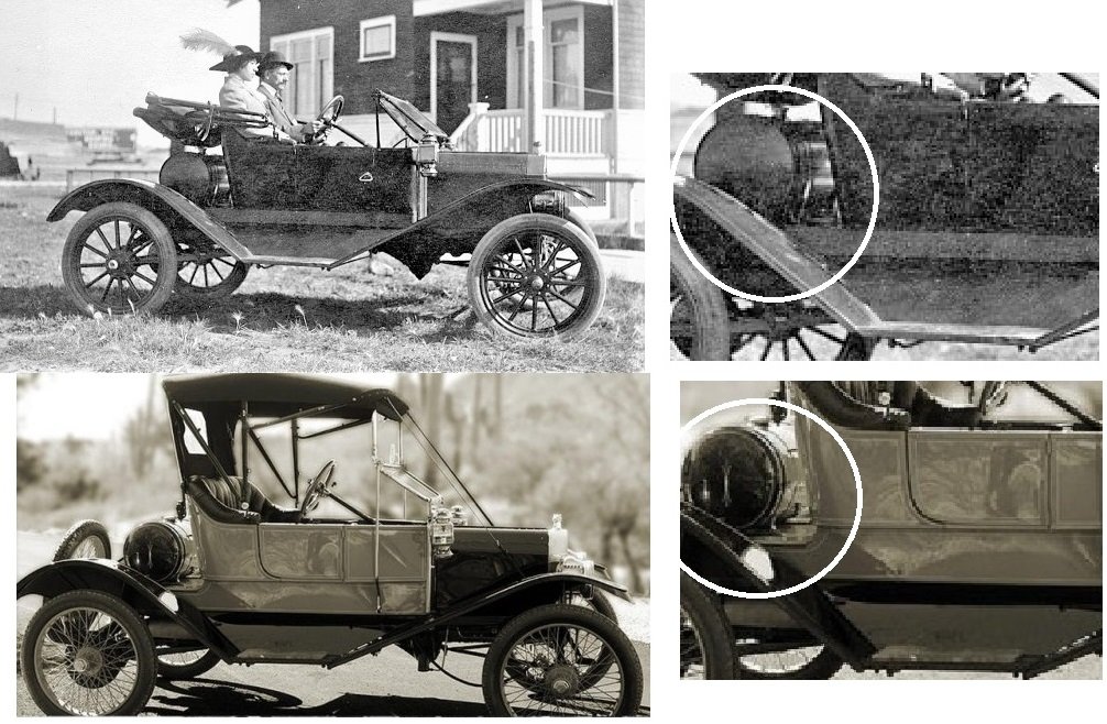 Interesting thought/idea that this could be an '11 open runabout with aftermarket doors. However, if you look at the photos in the link (if it works. If it doesn't, Google 1911 Model T Ford Open Runabout for a slew of pictures) and the artists' renderings in Bruce's Big Black Book on pages 82 and 83, the lower back of the body in Tom's photo doesn't match. In paying attention to Allan's comment that the steering wheel appears to be mounted upside down, a close look, to me, suggests a lack of black hard rubber knobs on the spark and throttle levers. Oh boy, this is getting fun. Ahhh...the never ending mysteries of our beloved Model Ts