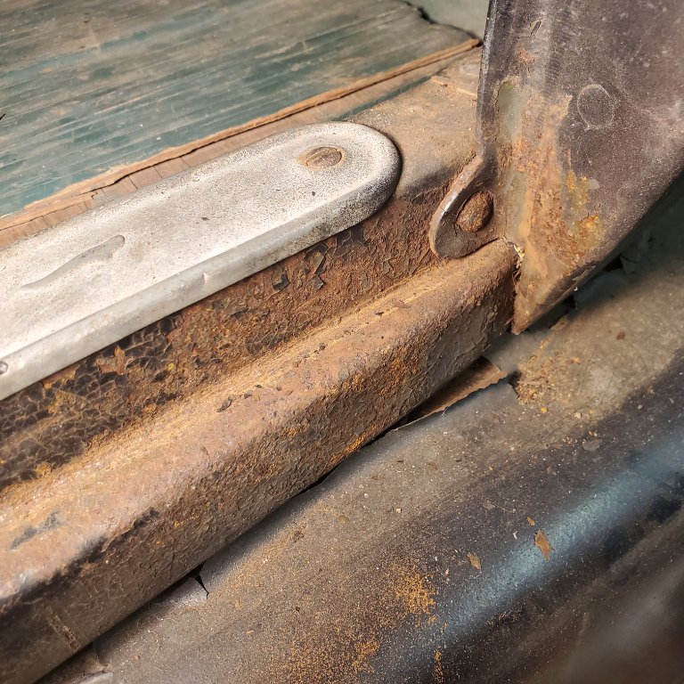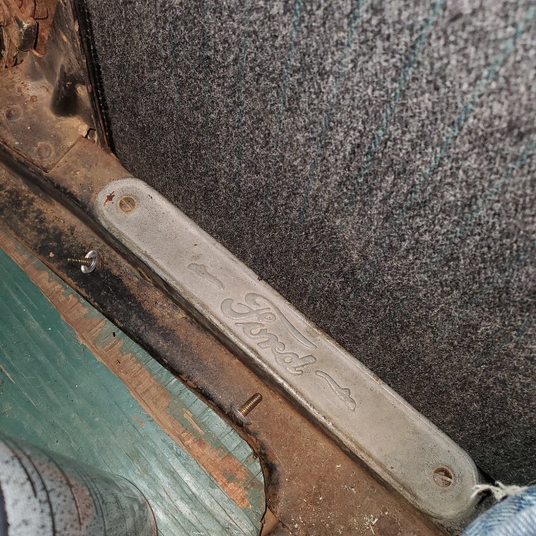 My 1926 coupe has a different sill plate than yours. It goes all the way across the sill from front to back and is held in place by several tabs that fit into slots at the base of the sill. If your has the slots, you may have the wrong plate on your sill, but it may not make a difference. I don’t think you can get original sills like mine for it was a very thin sheet metal part that was one of the first things to wear out, and are probably very hard to get. If yours does not have the slots, then perhaps Ford changed the sill plates in 1927. Lang’s says your sill plate is for a Model A, but, again, it may have been carried over from the 1927 Model T to the 1928 Model A. Jim Patrick