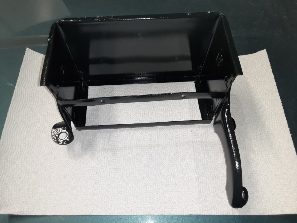 Pat, I forgot to answer your April24 question. The frame was not painted. It was blasted cleaned to bare metal. It does look like gray paint. The primer is going to be Rust-Oleum gray, so I have added two half pints of Rust-Oleum prime brown to have a contrast when painting it.