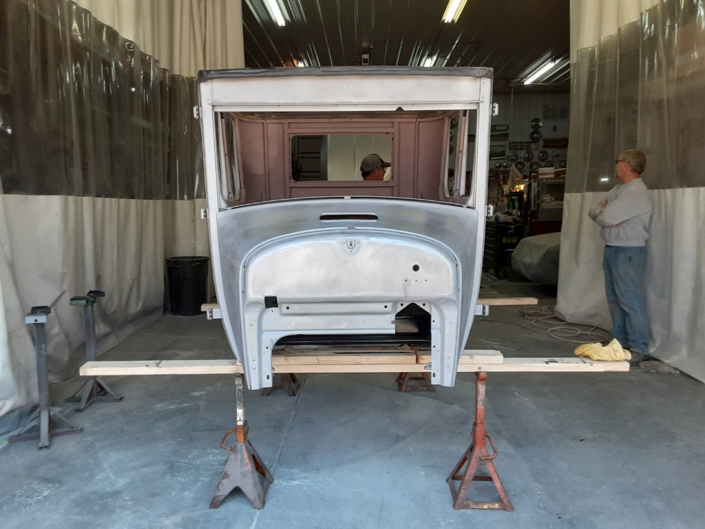 The body is painted. I took Ardith to see it at the paint shop. She liked it! Will bring it to the garage on Monday.