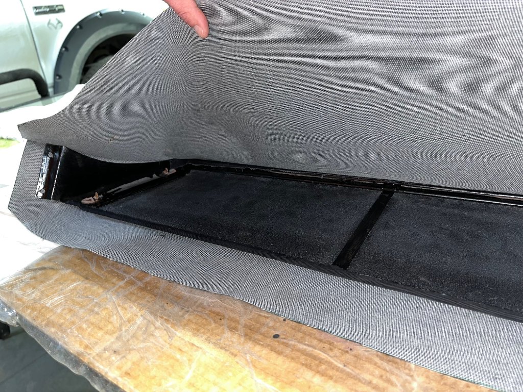 Photos of installation of top and interior material.