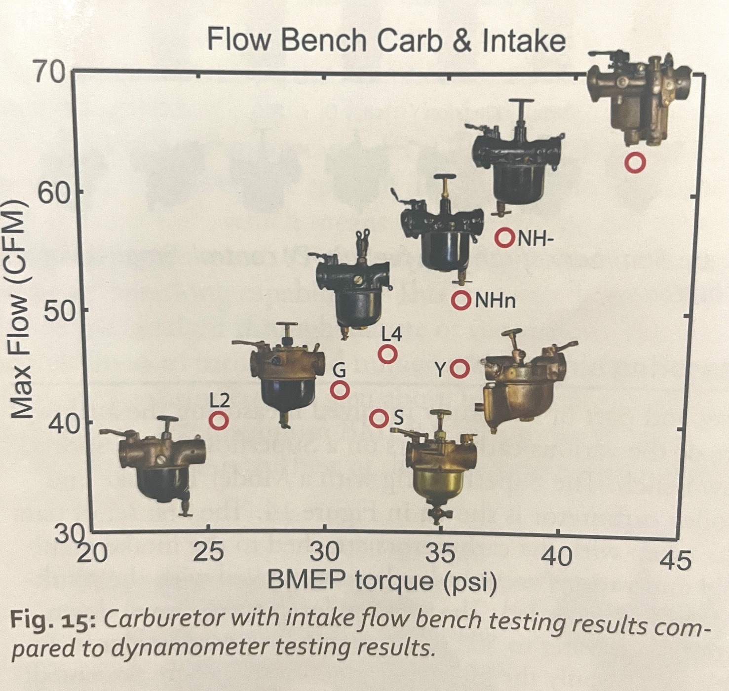 Below are some of the graphs of his study, the Holley G did perform good in flow bench (using a stock iron intake), but only midway in dynamometer testing.