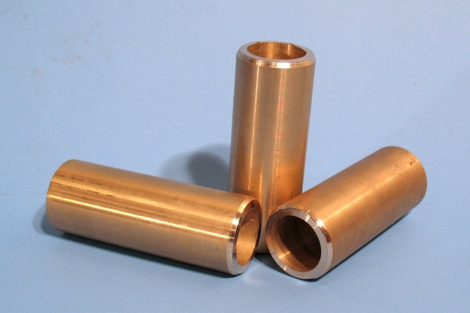I prefer bronze bushings. I bevel the ends and grease the hole to help them in. If you shop online and order bushings by size, this may help: