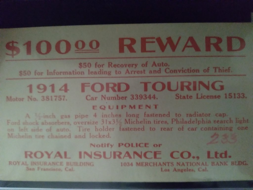The number on the brass plate was registered with the DMV in California in 1921: Is this helpful for you. How does it change the conversation?