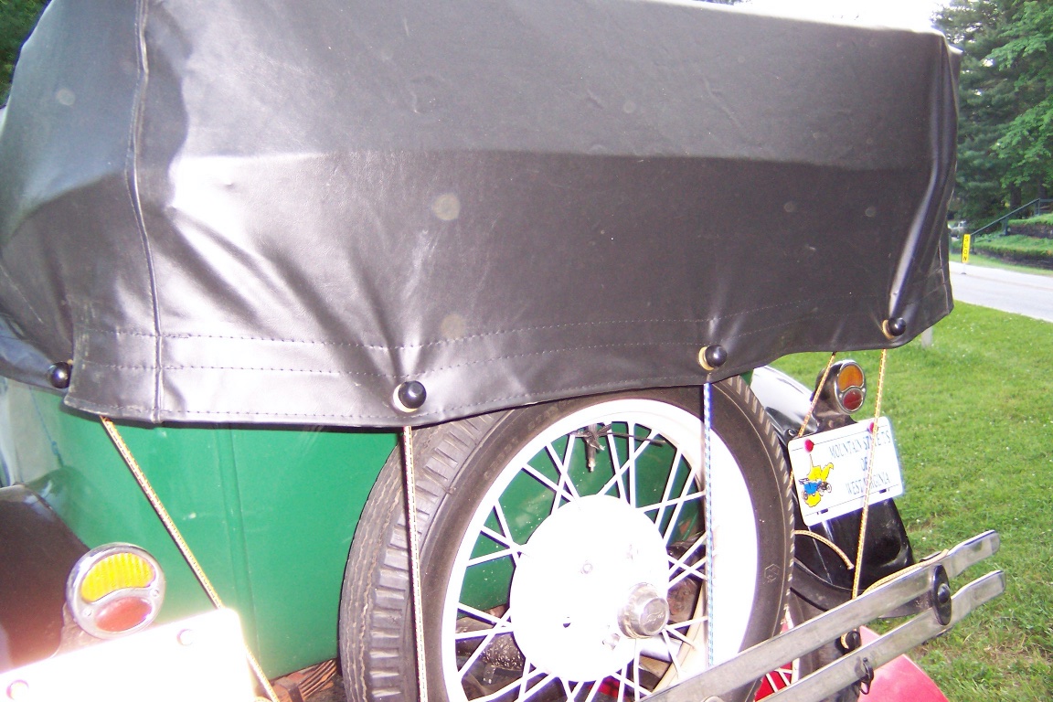 Nice work, for my open touring on flat bed trailer, took the rig to a auto upholstery and top shop. They made a heavy vinyl cover that goes over the cockpit, saving the interior from any water or rain entry. Tows well without flapping, and since no cover touches fenders or hood, paint is saved.