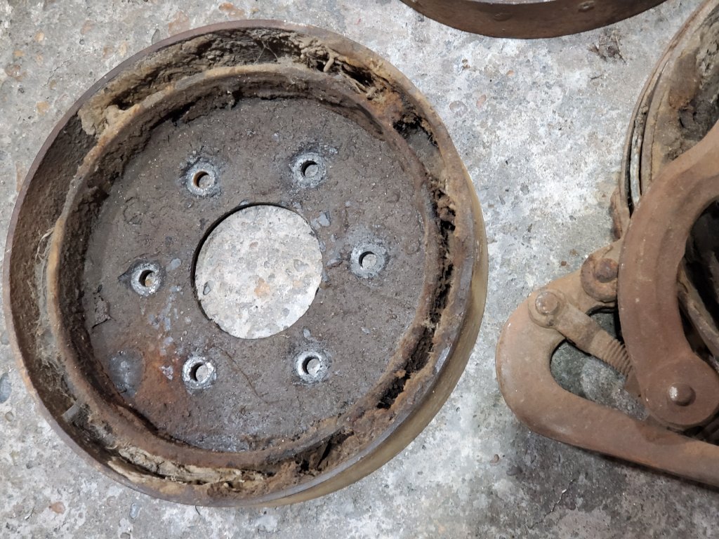 The Master Brake drums were cast iron, but only had friction surface for the larger 10” (ish) drum. The original E-brake shoe and drum was abandoned