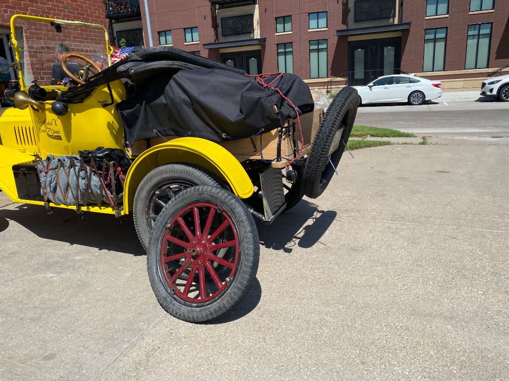 Where in the world did you find 36 hickory spokes on short notice?. Also a nicely framed beginning of the video T models slowly rising above a K hood. Well played.