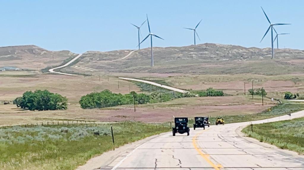 This video shows all ten, in their five T’s, heading west onto U.S. Highway 6 just west of Lincoln after leaving Myron and Barb Smith’s place this morning. Just as on the original Ocean to Ocean race in 1909, there’s a Ford Model K piloting the start. As it should be…..