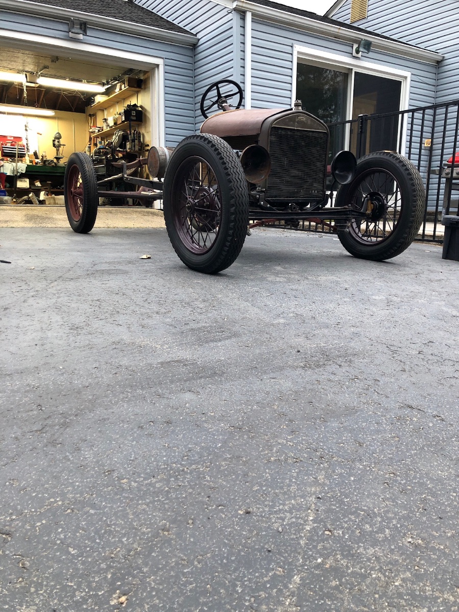 I haven't done a dang thing to it, but I did take it for a ride last Sunday. I discovered a guy with an ultimate man-cave, and another who is a contractor who I may hire to do some work on our house. The T does attract attention. The two guys that I met are into British sports car racing, and were fascinated by the T's wooden spoked wheels.