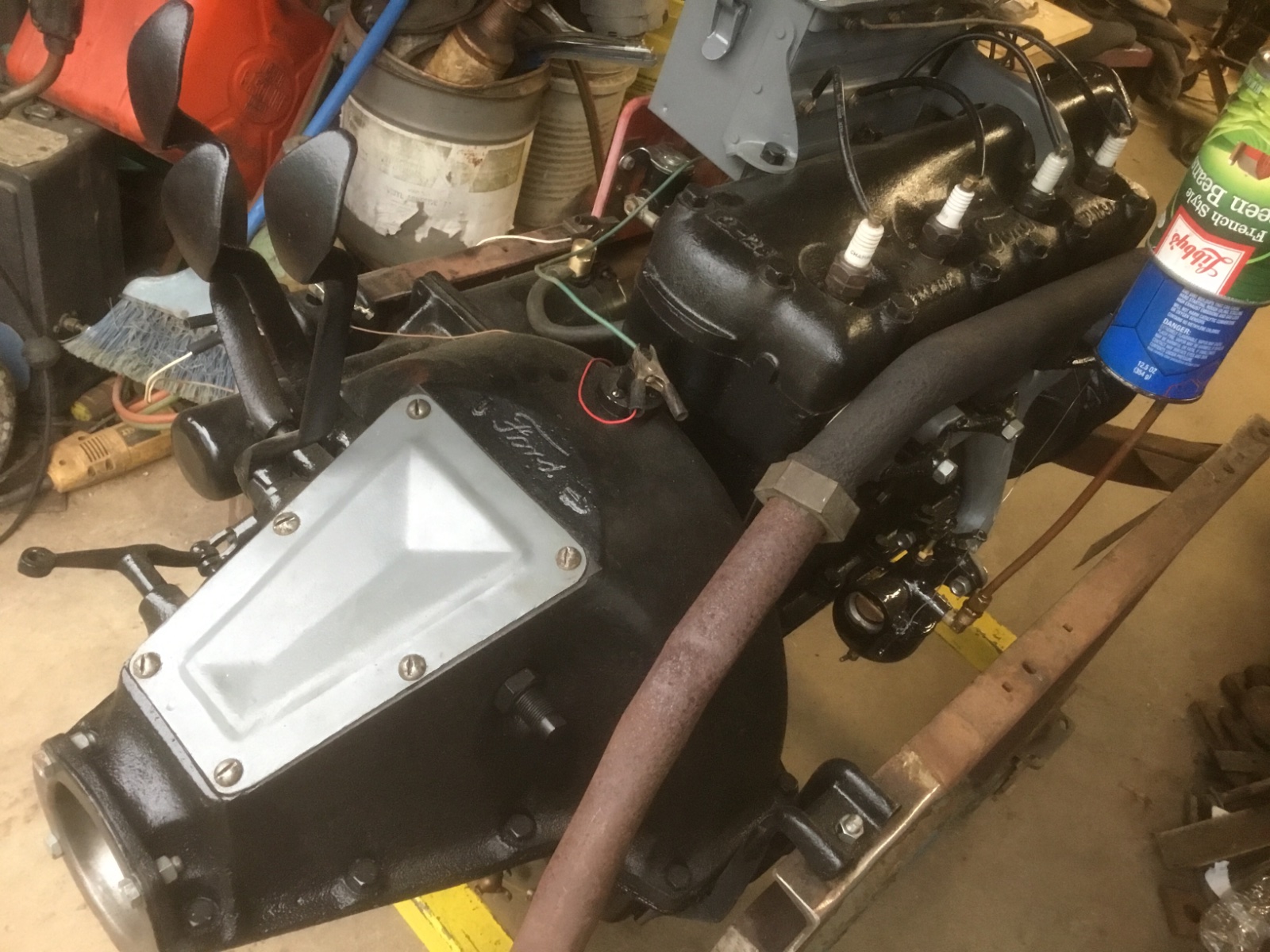 Sorry to say I pulled the Chevrolet over head conversion off my T. Not disappointed with the results, just don't have room or money to keep experimenting with it right now. It ran fine but with the carb setup I was using was slow. I will have the whole shebang at the Portland (Oregon) swap meet (EXPO center) this weekend.