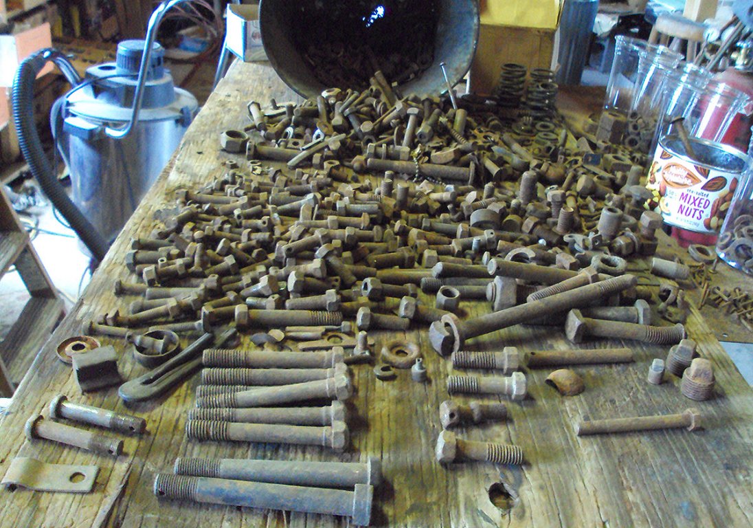 Thanks and yes on the mixed nuts. I spent two days sorting and rinsing in solvent. It's relaxing and an excuse not to do other things. These are pan and trans bolts. Some are in fine shape.