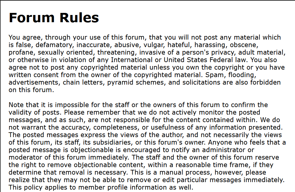 If this is true, it's probably a good thing since we don't want the Securities and Exchange Commission to shut down the whole forum!