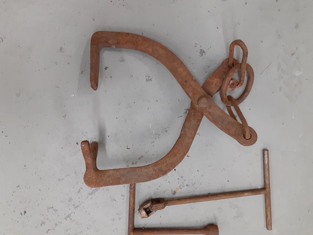 Those are Lifting Tongs. Variations for logging, ice blocks , stone etc. Be careful in using them, lifting the engine puts the jaws clamping at its weight.