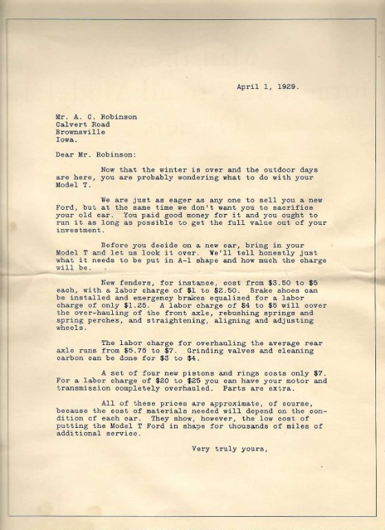I recently found this Ford circular from 1929 that encouraged dealers to look after Model T owners.