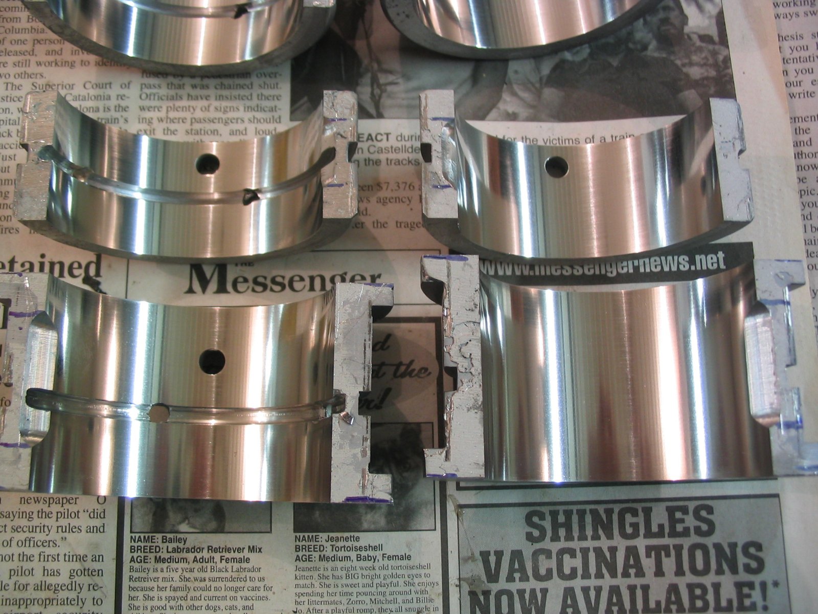 Also, when you take out old cam bearings, ( not Model T 's ) the bearing when new was a larger diameter, for crush. So, when you put a hot shell bearing in a spinner, it is at the diameter it was originally, and when you put in the babbitt, it pushes against the shell, and holds it there, until, it hardens. You don't want loose cam bearings.