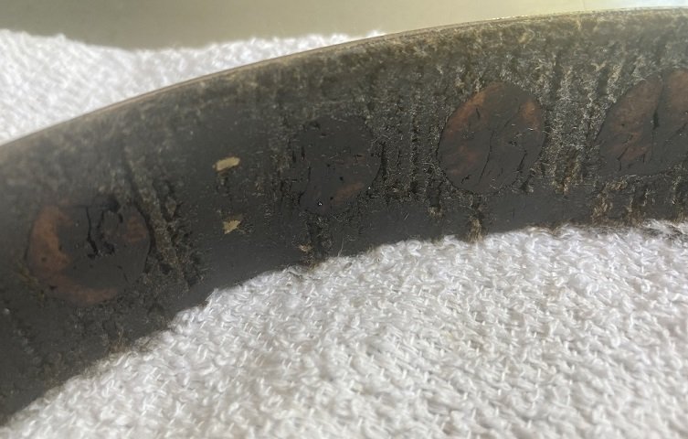 Yesterday I jumped into the project of replacing my transmission band with Kevlar bands. I assumed my bands were cloth, because it seems that cloth was the most popular band material. When I removed the rivets and looked at the old bands I was surprised to see a thin cloth band, with a leather band attached to the cloth band. Additionally the leather band had around 16 holes punched in it, with wooden plugs placed in each hole.