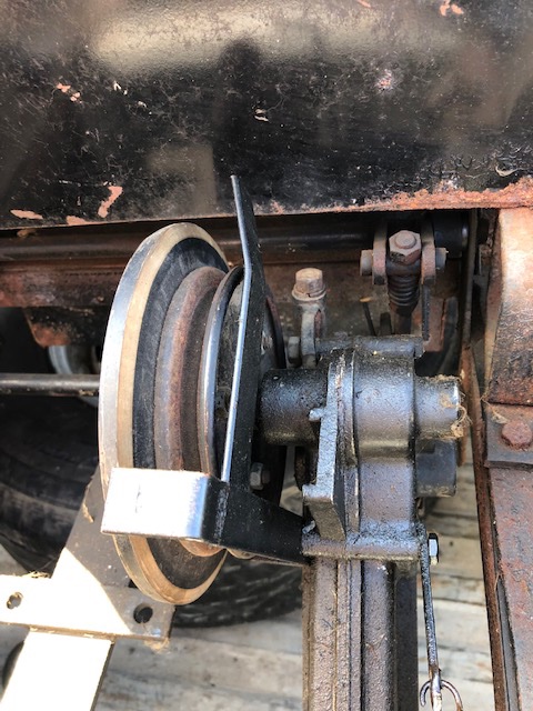 The pulley on the engine has two grooves, the groove closest to the engine is cut so that the reverser disc will mesh inside it and cause it to turn in the opposite direction. The outer groove is adjustable and takes a 3/8” wide belt which drives the pulley the reverser disc is mounted to.