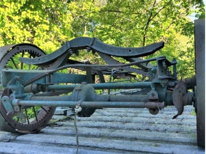 2. Then sometime during 1930 the Shaw was replaced by a very similar conversion made by the Peru wagon wheel co. It also had small wheels and an internal tooth bull gear, but the pinion gear was changed to a "roller pinion" gear and the rear wheels only had bushings where they ran on the axle shaft.