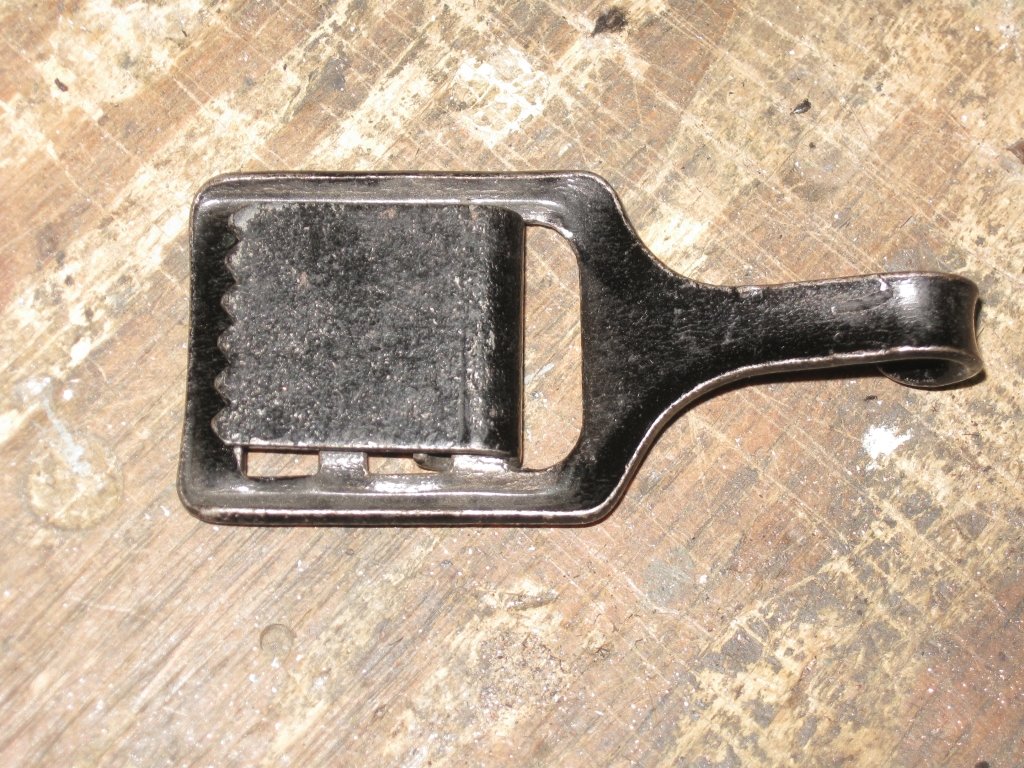 I was fortunate enough to get a couple of n.o.s. buckles/hooks for the front straps from Bob Bergstadt, as the originals had been lost long before I got the car.