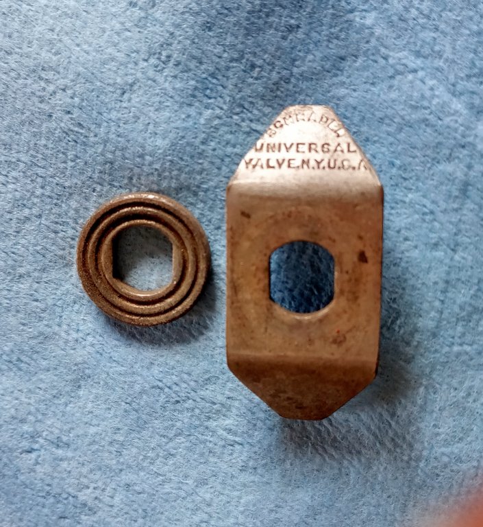 In Mark's illustration showing two separate pieces, the latest patent date is 1900. I suspect Schrader made their bridge washers that way first, and later combined them in one piece. I have both types with the Schrader name on them, though most bridge washers of either type are unmarked.