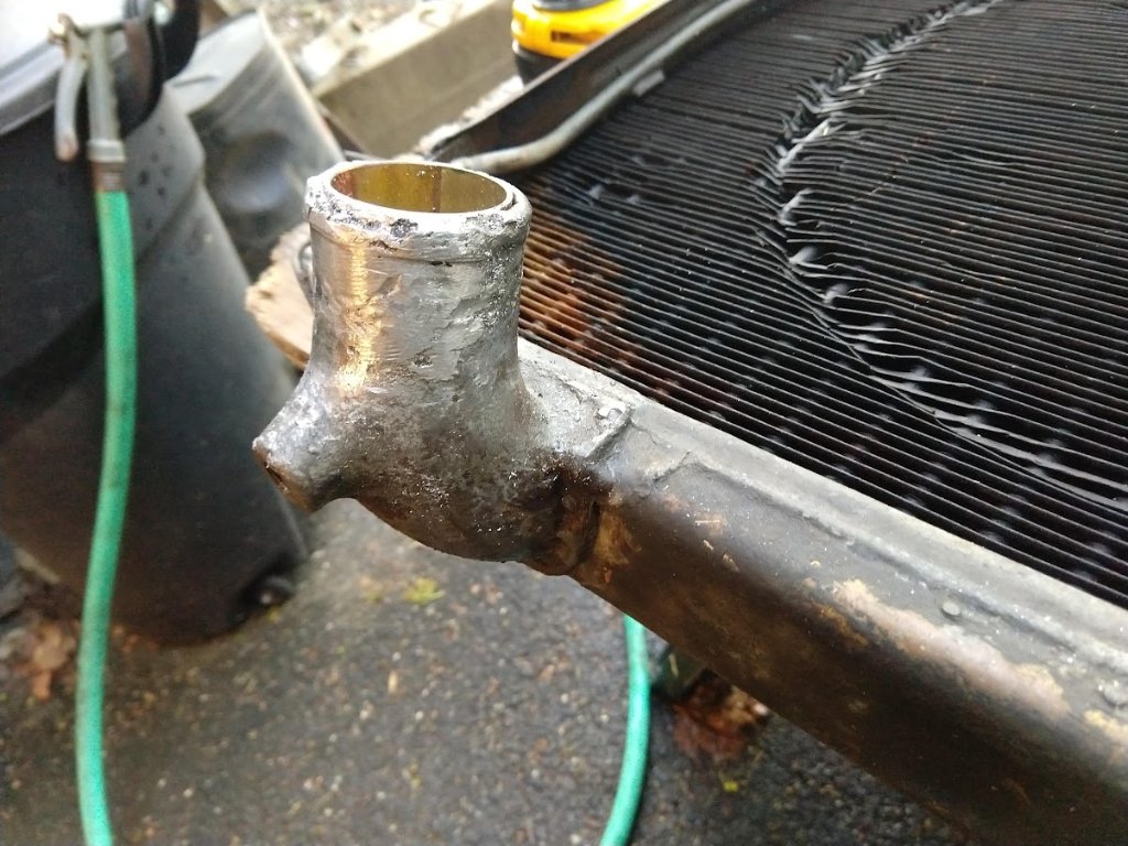 Luckily my radiator necks are good. Soldering so close to the radiator would make me a little nervous that some other solder joint gets apart. But in your situation there was not much to lose, I guess.