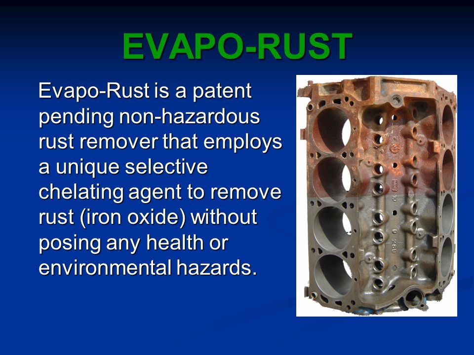 In the past, I have Googled in vain to try to find out what the actual chemical make-up of Evaporust is. In my opinion, it's something that one should be able to make themselves if they knew what the ingredients were.