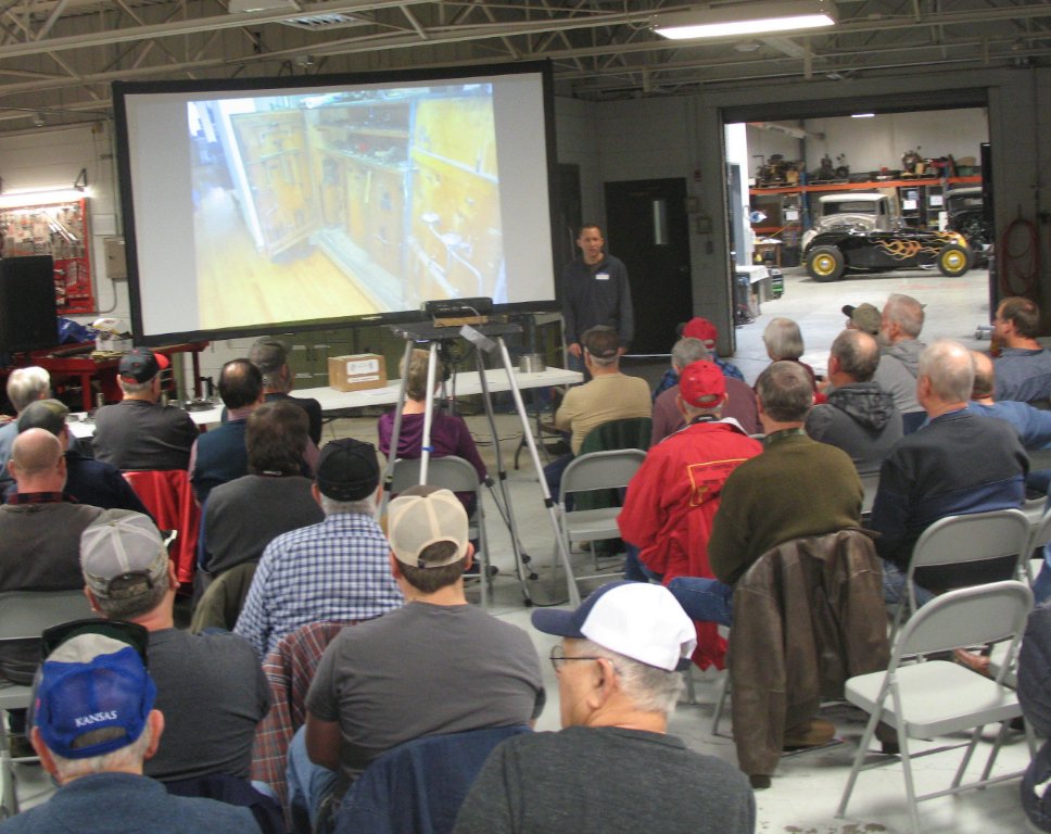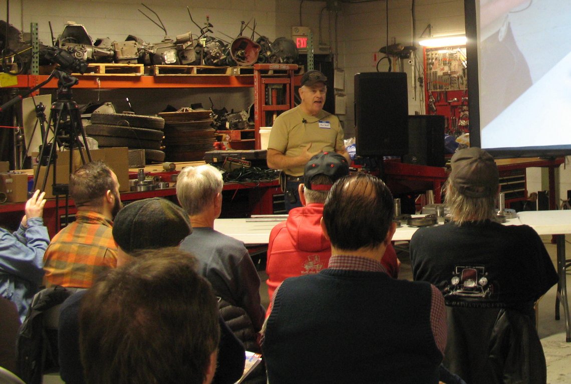 The January clinic has been going on for a long time. I've been attending since 2009. In recent years it's been held at McPherslon College, famous for its auto restoration program. This year's program featured Steve Lang on the parts business, Dave Nolting on transmission drums, Mike Vaughn discussing coils, and Verne Shirk on rear brakes. There are always interesting cars to see. Some are past student projects, some currently underway, and some awaiting restoration, plus some guest cars brought in just for the day.