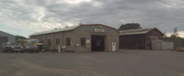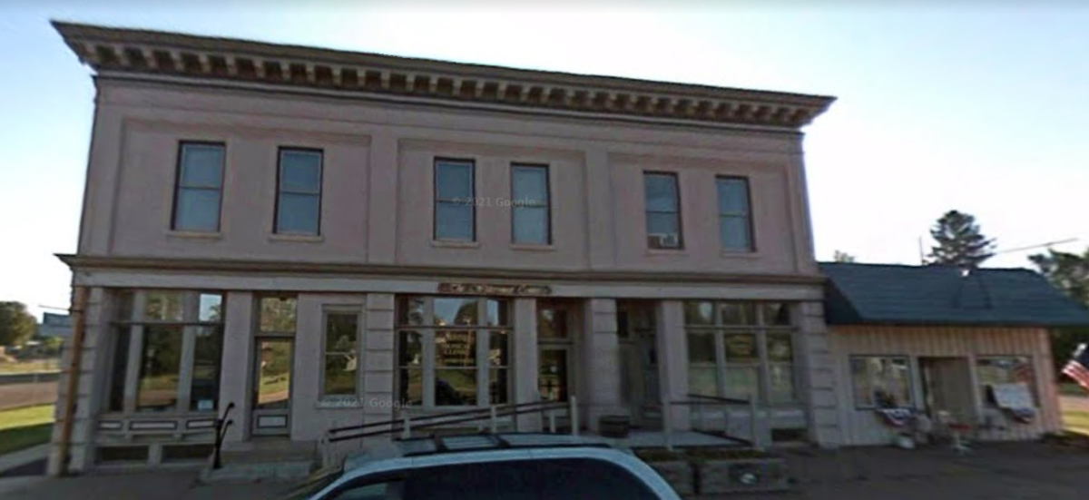 Google mapped the town and looked for some buildings. There were only three that possibilities , the rest of the town is now off he main rerouted highway, US45, and very narrow roads. Could be that the tire cover was personalized as well to look real