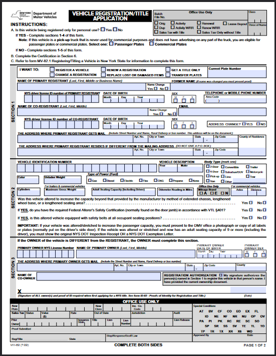 I went back inside with that paper and my title and got a new title and registration.