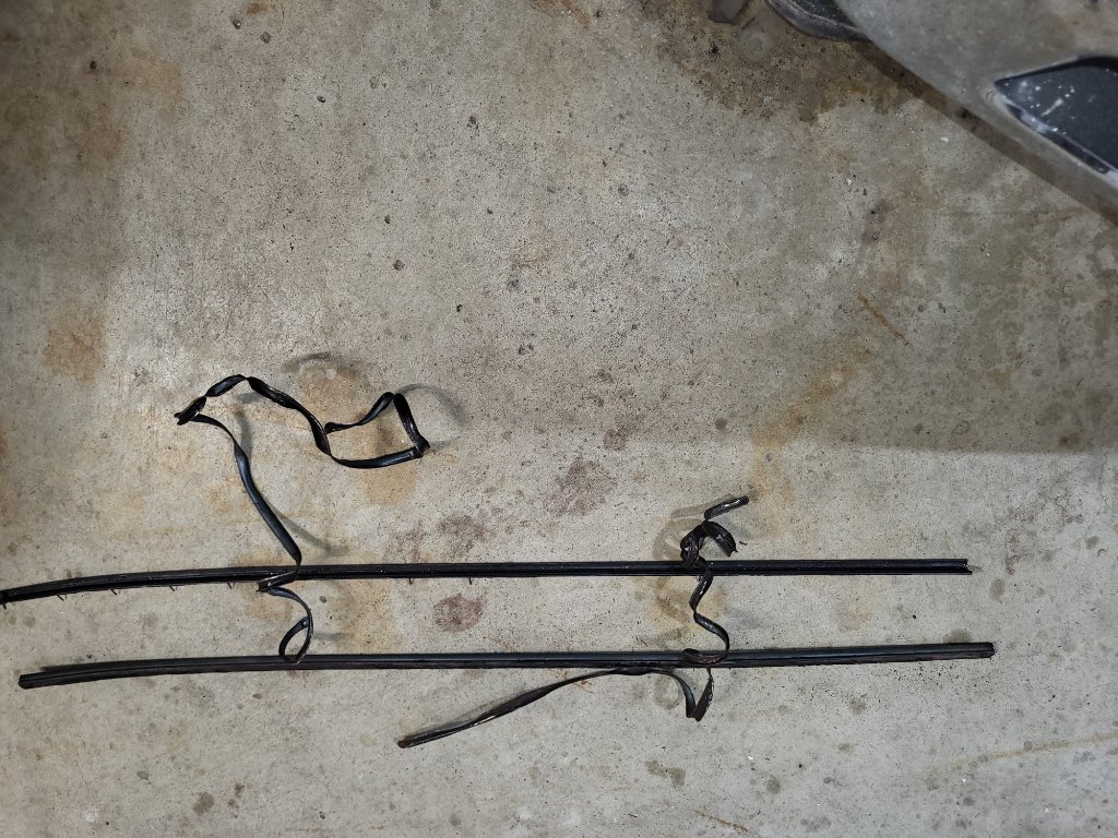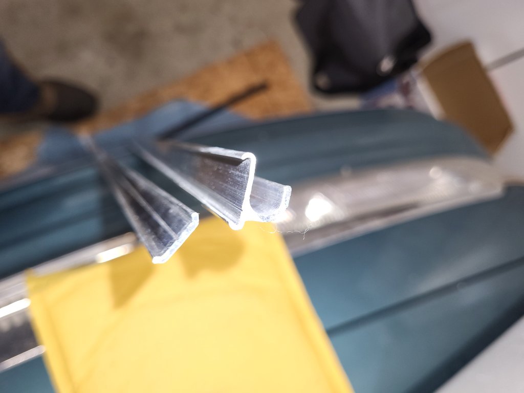 I wanted to reuse the original rain gutters from my coupe, but I have not been able to separate the two pieces. These are shown in the first three photos. I have purchased new aluminum gutters shown in the last two photos.