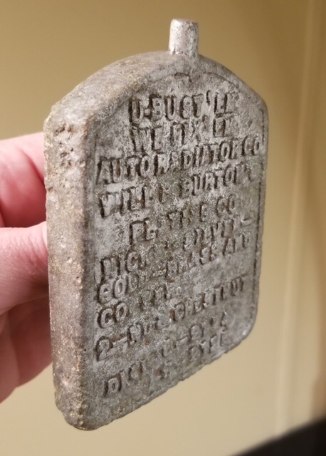 Since that piece is cast, and since the shop did plating too, likely it was plated shiny, and used as a badge or coat emblem or paper weight. Without holes wouldn’t seem it was affixed to a repaired customer’s radiator.