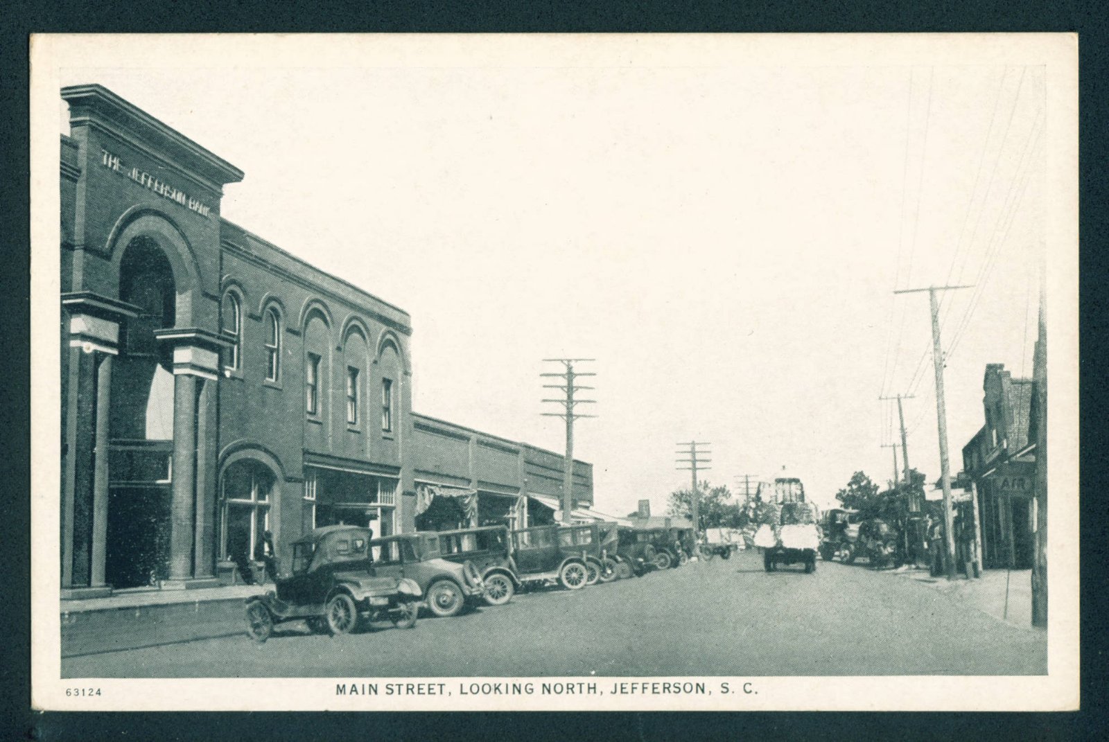 I own a building in the small town of Jefferson, SC, and we have this old picture of the town that everybody cherishes... I wish I had a higher resolution scan but this is from a postcard... if you click it it should get larger. Anyways, this picture is always listed as being from 1925, but I have reason to believe it's from earlier than that. I own a building built in 1920, that's not in this photo, so either me or the photo date is wrong