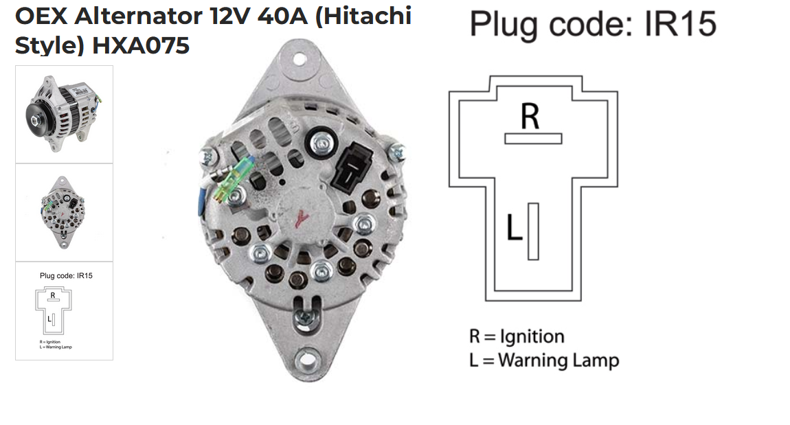 I'm putting a starter in a 15 T for a friend and have run in to an issue I don't know what to do. The car has a Hitatchi alternator, and I'm unsure on how to wire it. The lead to the battery is obvious, but there are two male spade lugs on the back I do not know how to wire. I assume one is for the idiot light and one is the exciter but I do not know which is which. I have searched the internet, but I have not found a schematic for this alternator. There was not a resistor in the line, and from what I read, it needs on so the battery lead does not feed back from the exciter lead. Help please