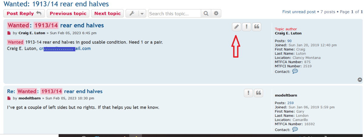 First you need to be logged on to edit your posting.Craig E. Luton wrote: ↑Fri Mar 03, 2023 12:03 pmThank you, Now how do I get rid of my email address?