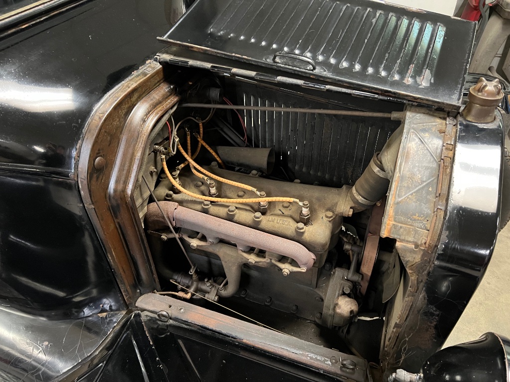 This is a really nice '16 ! Just speculation, but I'd be willing to bet that accessory hood was originally paired with a radiator shroud that covered the original brass radiator. The next "update" of a stock Ford radiator shell and a Peerless honeycomb, the louvered hood doesn't appear to agree perfectly with the curve of the radiator shell - though it may just be the photo makes it appear so.
