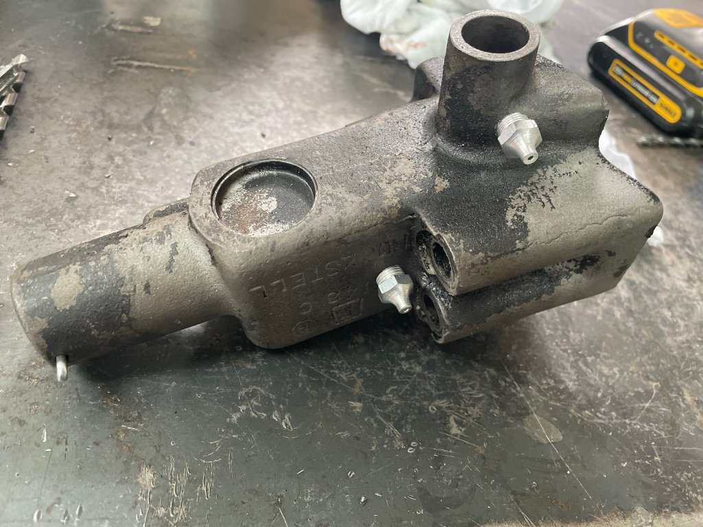 Additionally, I replaced the original plunger spring with a lighter weight spring which still holds enough tension however takes less lever pressure to move. While I was in there, I noticed there really wasn't any lubrication coming up from the differential lube, so I took the liberty to install era-authentic grease fittings where I can add grease to the plunger & roller area, and to the shift lock arm area. Hopefully the grease around the shift lock arm will slow down the access of water if we ever cross deeper bodies of water again. Also, lesson learned for me about checking rear ends after tours where we cross creeks.