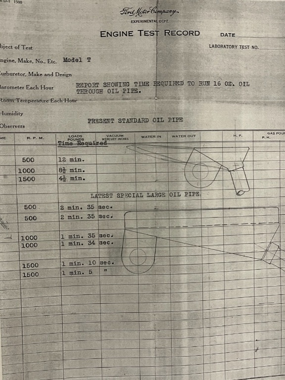 Interesting Ford test report showing the improved oil flow between old and new oil pipe.